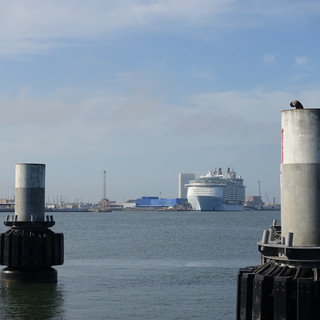 Es geht aus Galveston raus, wir passieren die vielen Ferienhäuser, die hier in unmittelbarer Strandnähe auf hohen Stelzen gebaut sind, um möglichen Flutwellen zu trotzen. Unterwegs sind zwei Fähren auf dem Weg, die auf uns zu warten scheinen.